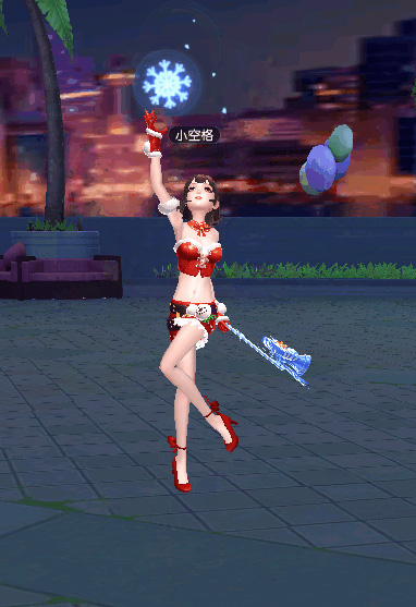 而另外一款重磅登场的动作饰品【圣诞铃铛】是一款精致的花环铃铛,外圈的水蓝色枝叶下,一双银铃缠绕着金色爱心。随着人物的跃起,手心中的雪花也一同闪现,身后渐渐出现的雪中城堡更是无比惊艳。