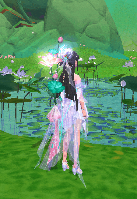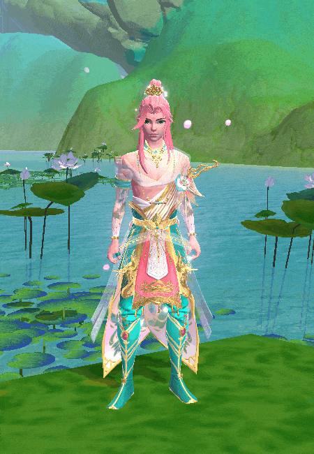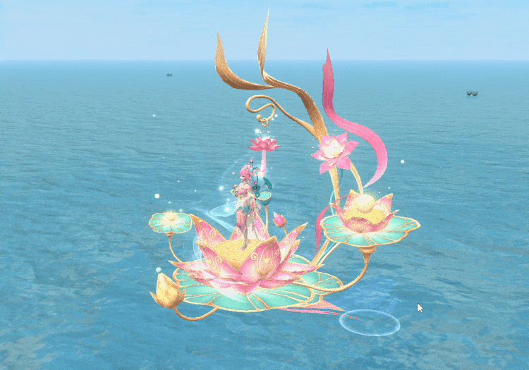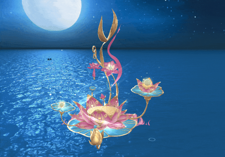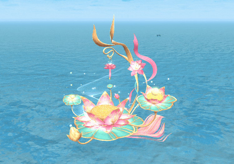 载具上方鎏金装饰坠有随风浮动的莲花灯