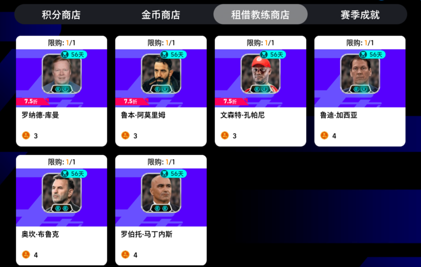 赛季更新后必须要做的事是什么?当然是赶紧将阵容中到期的教练替换掉!新赛季的租借教练商店即将上新!