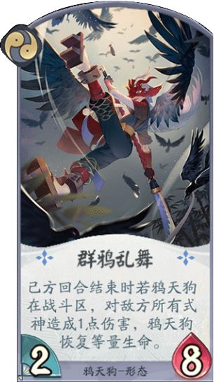 正义之刺:虽然鸦天狗自身的攻击力并不高,但是在看过前面卡牌介绍之后,我们就比较容易理解正义之刺的用法了。当它驱动茨木童子或者海坊主时都可以造成巨大的伤害。