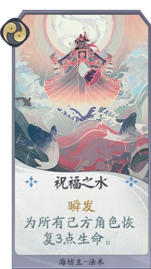 所以留牌以站场和群伤打击为主。比如迁怒、群鸦乱舞和巨浪的AOE组合,如果能干掉对方几名式神那就为己方争取了宝贵的发育时间,到3勾玉时可以通过蹈海、祝福之水来恢复血量,只要对手解不掉海坊主基本上很难对我们造成威胁了。