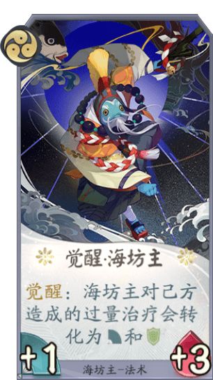 蹈海+觉醒.海坊主:把这两张牌放到一起来讲,是因为海坊主在这个组合之下可以将战斗所造成的的伤害转化为攻击力增益到其他式神上。