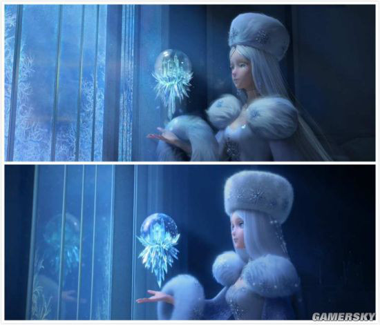 除了在服装模型上高水准的细节刻画,该CG片中最令用户感到惊喜的是,首次展示丰富的场景模型和群众人物模型。即使只是短短几秒的镜头,也能看出精细的打磨。比如红城堡内的雕花,据了解是动画设计师手工一朵朵雕刻而成。