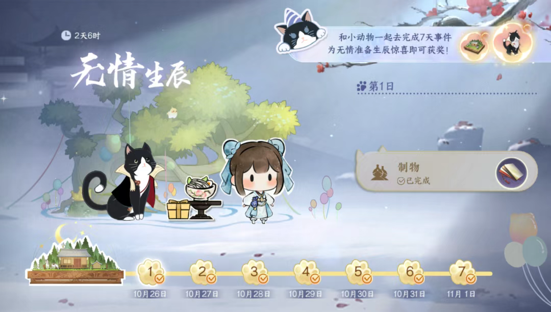 除了三大联动外,在 10月26日-11月4日期间,游戏还会开启“无情生辰”活动,在该活动将按时序开启当天活动阶段,完成每日小游戏或对话可获得不同奖励。