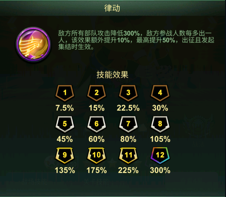 解析:降低敌方攻击力,团战规模越大效果越强。