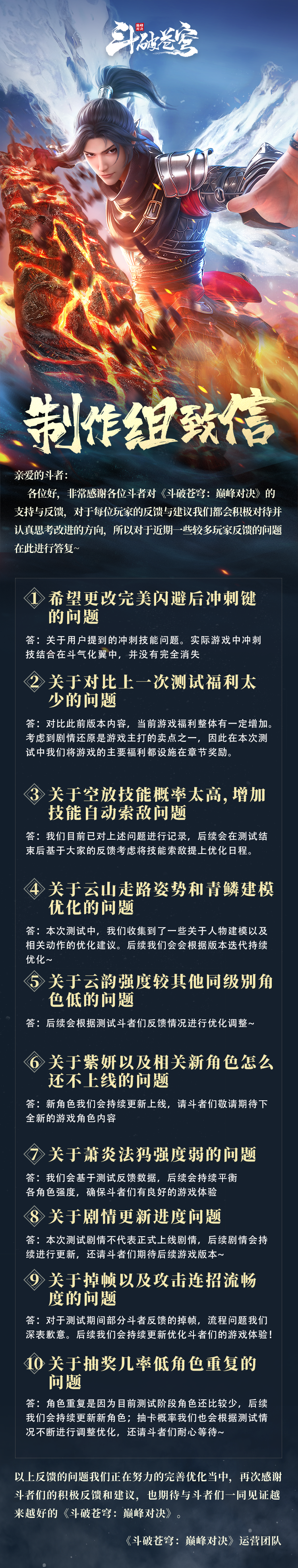 以下是制作组关于本次测试的一封信,请各位斗者查收