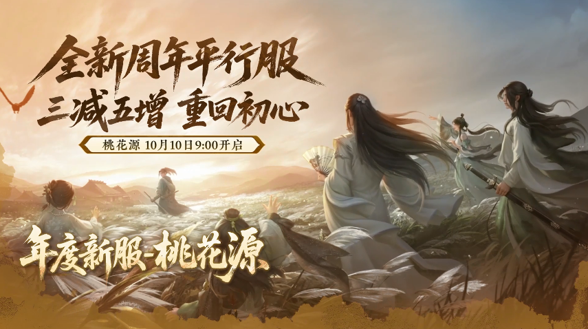 ·回归初心的周年平行服新服“桃花源”亦同步开启,以“三减五增”为核心方向,没有历史包袱,没有实力鸿沟,少侠可轻装上阵,再拾初入江湖时的那份纯粹感动!
