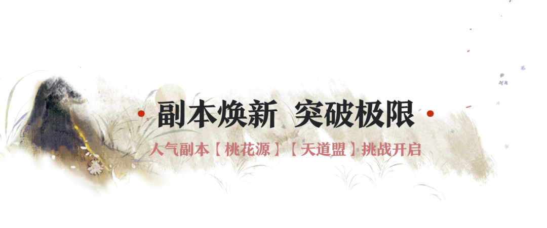 ·【桃花源】【天道盟】双副本现可供少侠挑战,更强策略、更燃战斗!全新3V3车轮战赛事“金戈鸣沙”热血来袭,更公平、更刺激、更有趣!