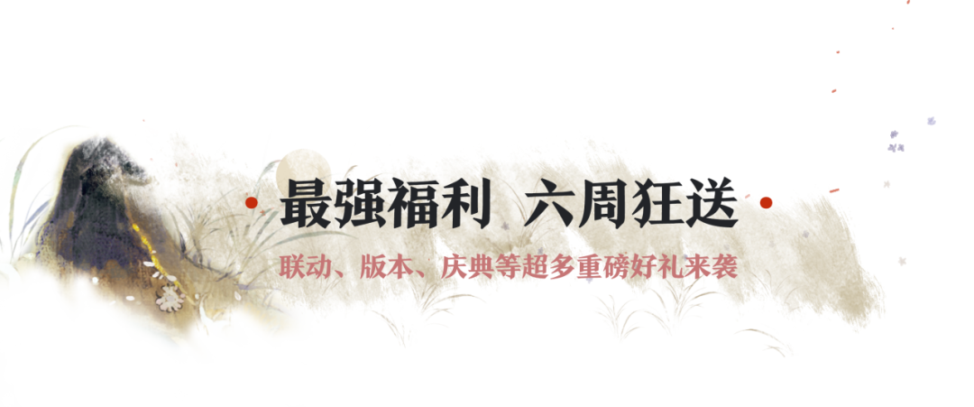 ·平行服史上最强福利持续六周放送!包括联动限定外观、签到趣味披帛、专属朱文圭异色头发、捏脸4.0百款妆容、基金重置、心愿时装、心愿月自选白染与精美挂件等超值好礼!更多材料与资源加倍投放,助力少侠畅快成长、尽享庆典!