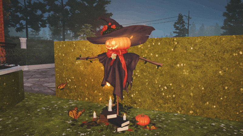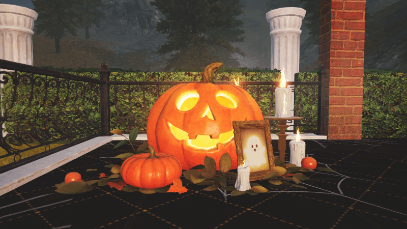 昏暗的角落里摆放着庄园收获的巨大南瓜灯