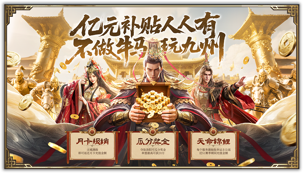 亿元补贴活动于正式上线,面向所有S1赛季主公,福利总额达1亿元!让主公“真正零成本起家,边玩边赚!!”