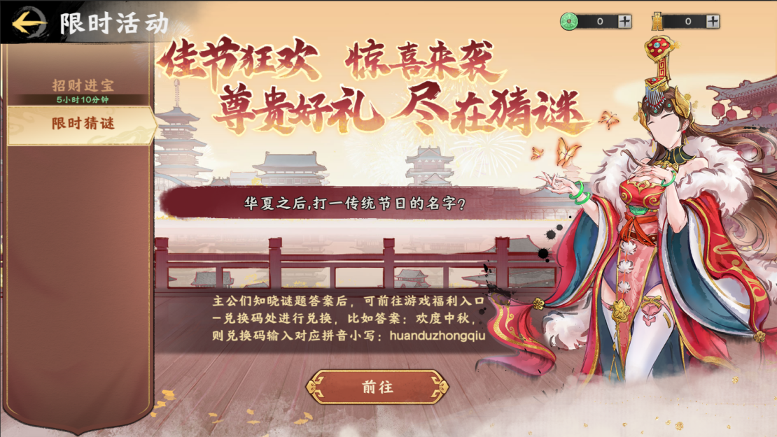 主公需根据问题提示,前往游戏内【福利】入口-【兑换码】处输入正确答案。