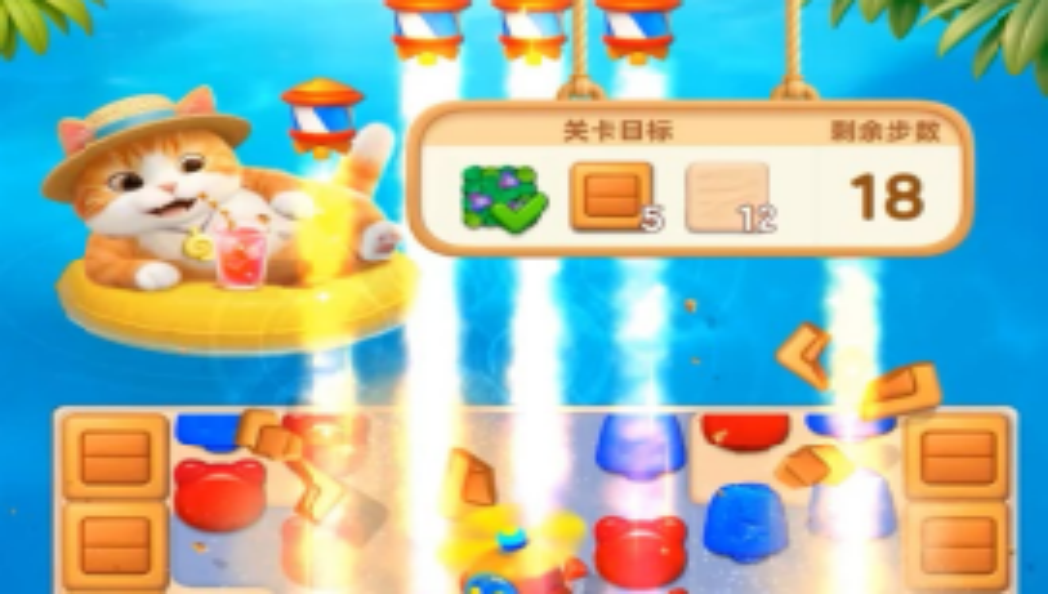 谁懂啊!这只猫过得比我好😭 喝着果汁躺在海里,我也想过这种生活!快来《欢乐消消时光》,把烦恼统统炸