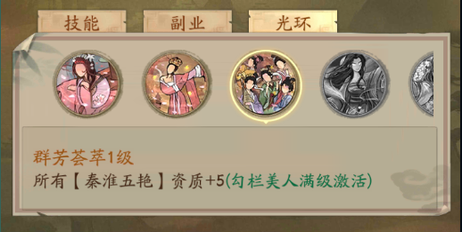 秦淮五艳将新增光环--【群芳荟萃】:所有秦淮五艳资质增加,且拥有多名秦淮五艳时,光环效果可叠加。