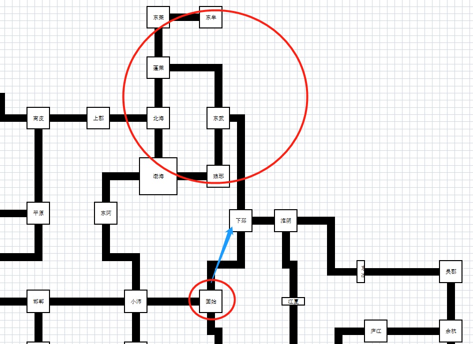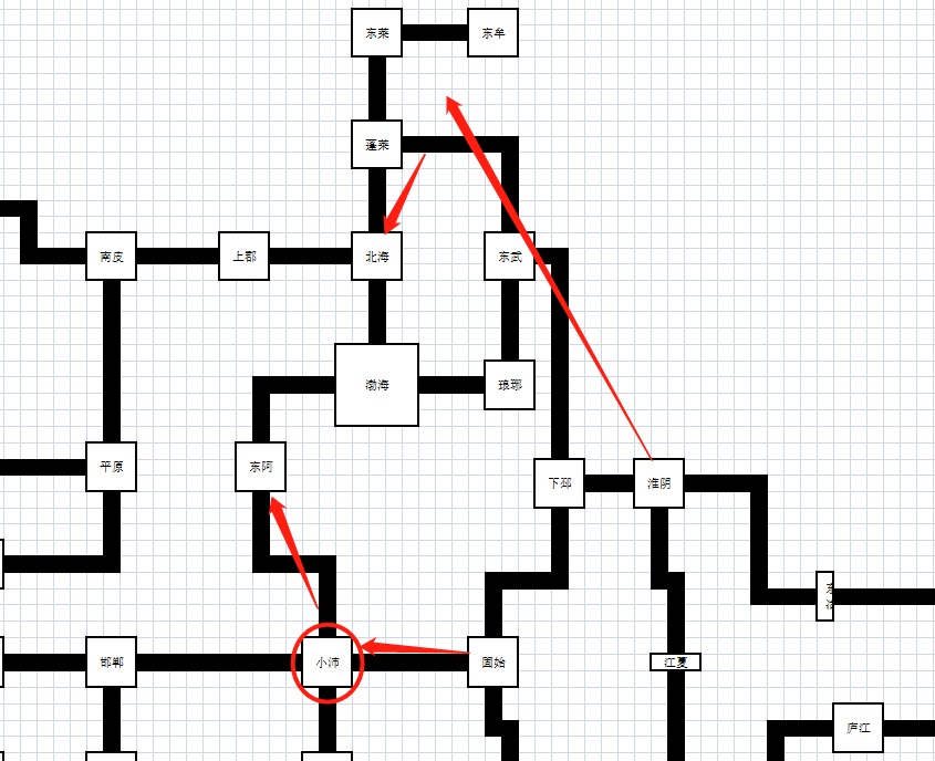 吴国拿下固始后,接下来就可以攻打小沛,甚至不需要攻下小沛,只要点火,渤海下方兵线就断了,随后再从上方进攻,点火北海,渤海兵线就全断了。