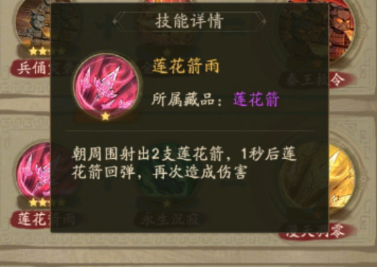 4、AOE清怪技能尽量选择与核心技能搭配的,输出距离远的技能,组合引发质变,可以提升清小怪效率。输出距离,不容易掉血。最优选择是莲花箭雨(搭配永生沉寂-暴击率)和御剑术(搭配羊灵大吉-移动速度)