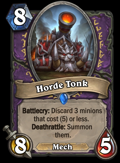 战吼:弃掉三张法力值消耗小于或等于(5)点的随从牌。