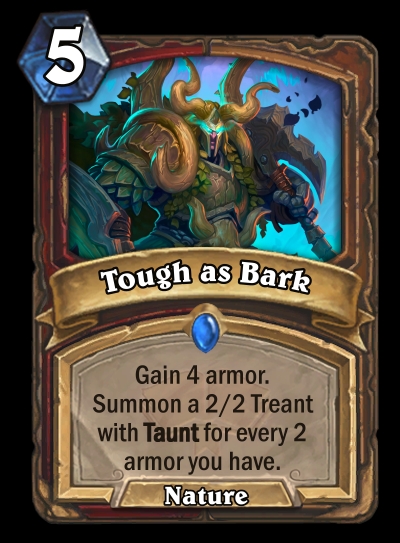 获得4点护甲值。你每有2点护甲值,便召唤一个2/2并具有嘲讽的树人。