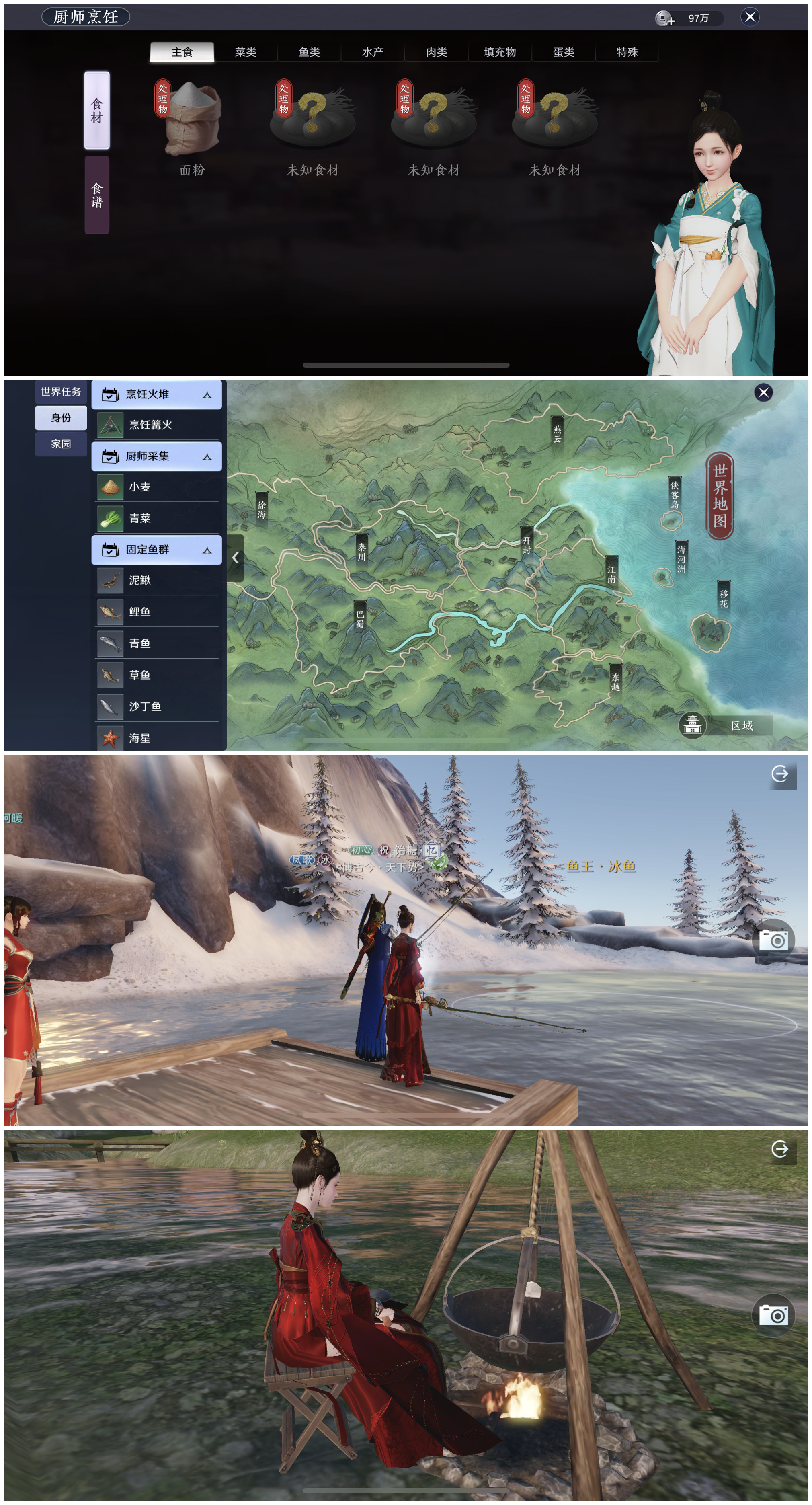 如果你有当中华小当家的理想,或者你是这个吃货,那你就太适合厨师啦!收集各种食材、垂钓鲜鱼,还有小溪边纯天然烹饪,真有种“华农兄弟”的感觉呢!