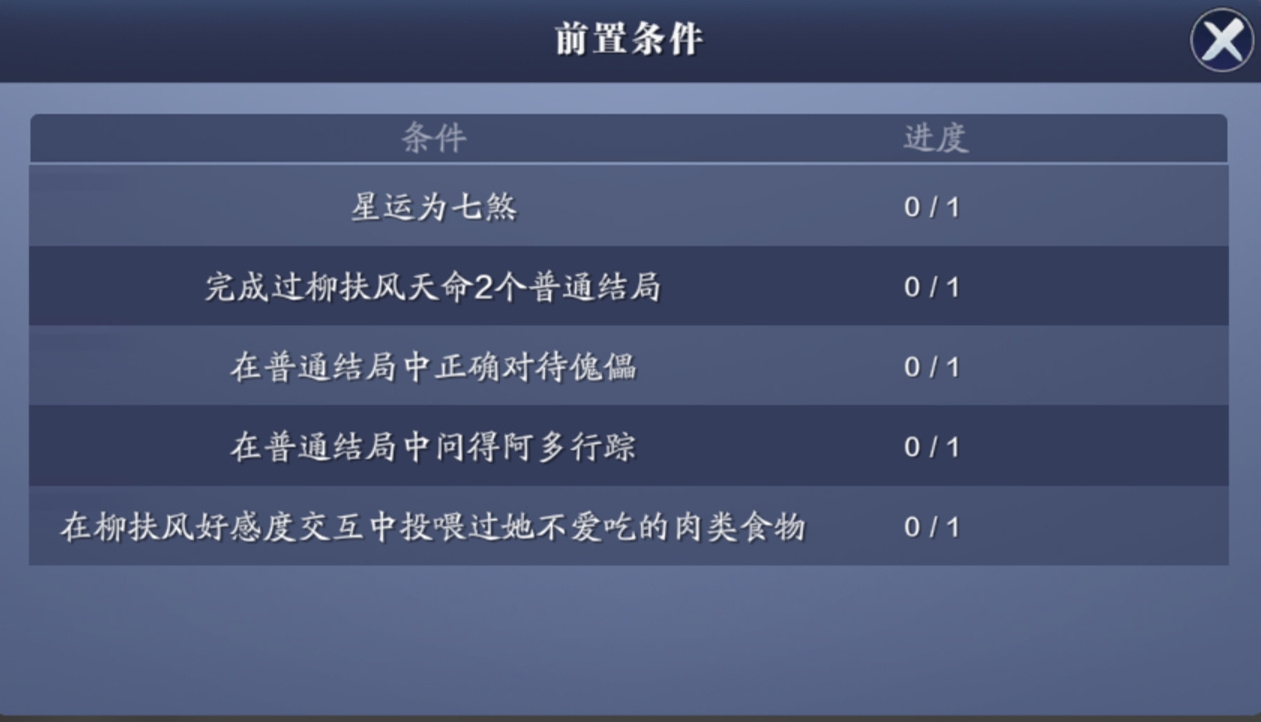 当然了,你可以对柳扶风的命运进行更改,从而获得特殊结局,特殊结局的开启方式如图所示,至于特殊结局什么样,就需要少侠亲身体验了哦。