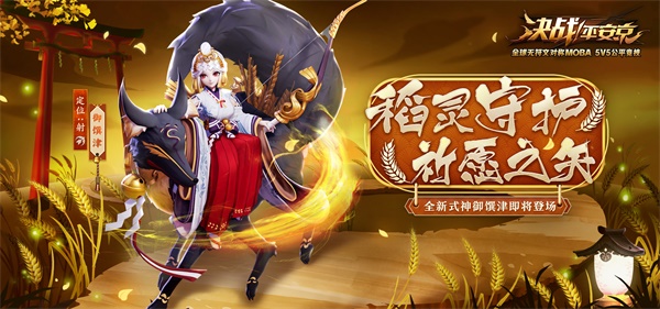 祈愿神舞,稻荷飘香。明镜立于额前,金黄谷穗满筐,少女手握长弓,肩负箭矢,身倚灵狐,轻巧地梭巡在田间。今日,《决战!平安京》全新式神御馔津也将同步上线,这位温柔而又坚毅的式神定位为“射”,有着出色的输出能力与控制能力,她将用祈愿的箭矢化解世间的绝望,实现人们一切美好的愿望,即刻与她携手而战吧!