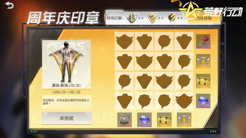 10月31日至11月11日,点亮印章有机会获得周年庆扭蛋、任务直通卡、特训积分等奖励,点亮全部印章即可获得永久道具翼装:最强小队!快上线收集印章,领取海量福利!