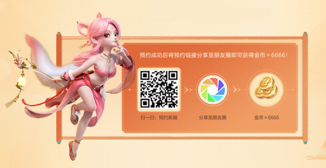 本次新服活动新增福利【预约助力】,诸位预约成功后将界面分享至朋友圈,还能额外获得6666金币奖励!