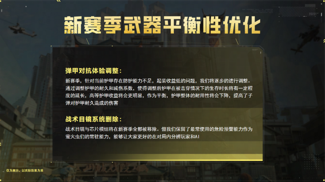 赛季平衡性优化:针对萤火虫们关心的性能平衡性等问题进行了持续优化,确保更流畅的对局体验!详情请看下图↓
