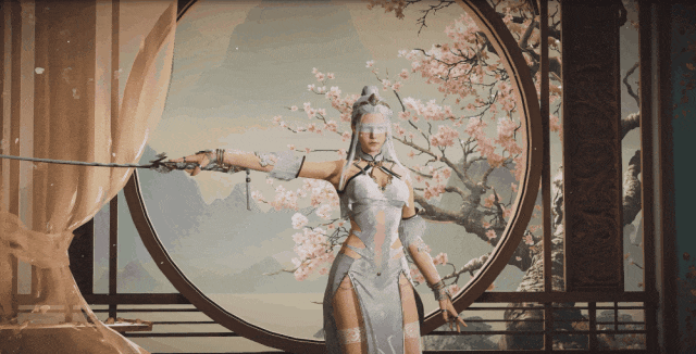 白蛇系列:限定时装【白蛇飞纱】以洁白轻纱旗袍为主题,银发如瀑,裙摆绣制精致白花,寓意纯洁高雅;搭配碎蜂限定刀皮【白玉斩】,刀身如玉,寒光凛冽,挥动时如白蛇缠绕,流光溢彩。