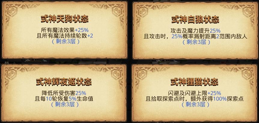 图3还记得恶魔称号里的小恶魔么?学习称号后可以获得一只跟随你九层的小恶魔。而我们的新冈布奥阴阳师,可以积累咒符能量,并以此施放阴阳术,召唤式神,跟随我们的冈布奥(是跟随而不是召唤哦),同时每个式神都能提供不同的状态。