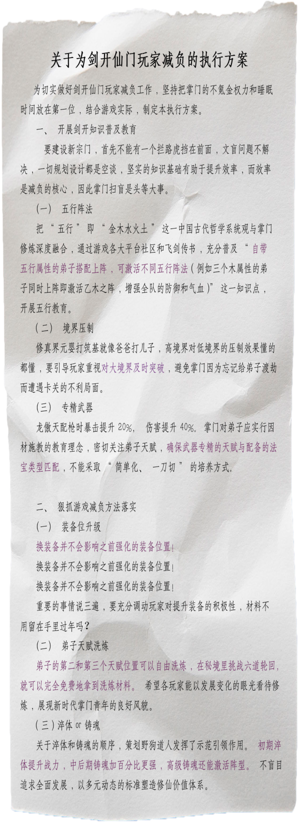 要推进玩家合理减负