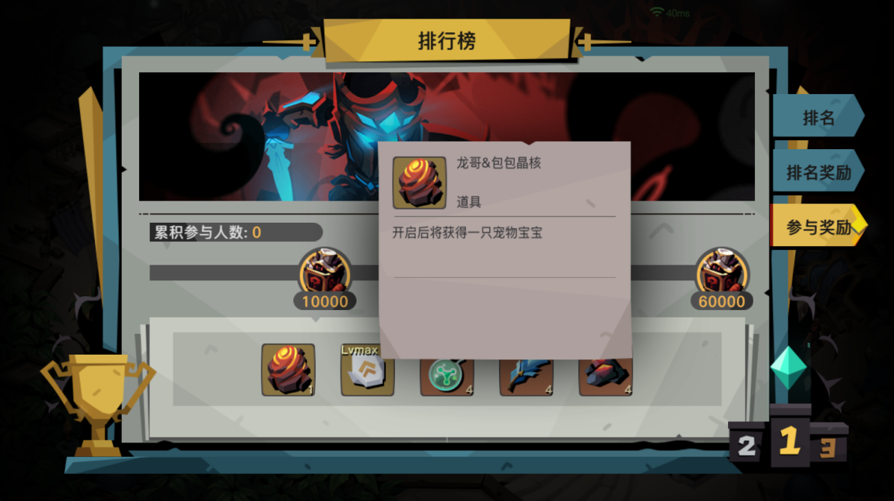 活动描述:活动期间参与“试炼之地”副本,提升排名,可获得海量资源,全服玩家一起努力,还可获得免费宠物「龙哥&包包」,快来参与吧!