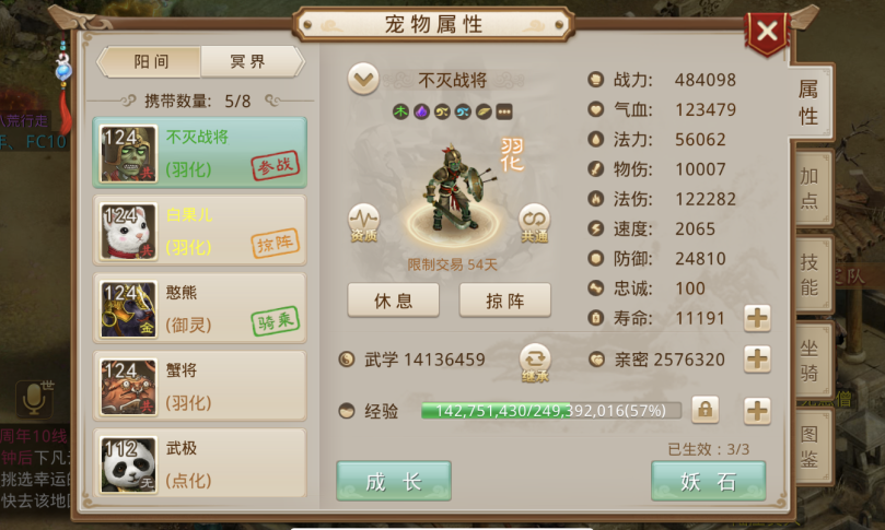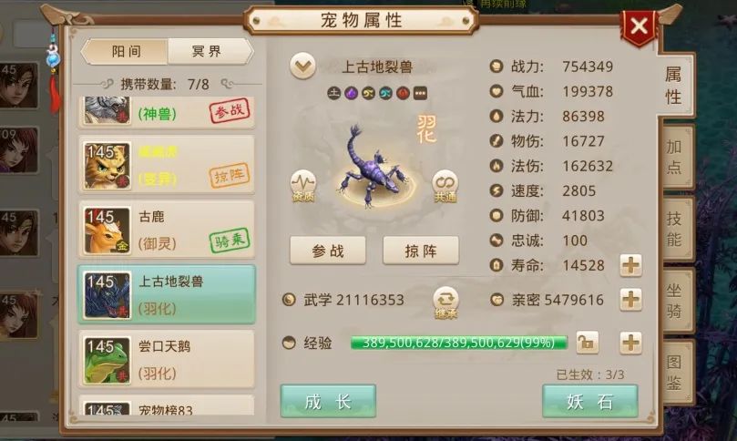 道友2只战宠都是15.8万的法伤,已经属于是天花板级别的战力了。而且听道友的意思,第3只强满幻化的6阶精怪战宠也要到位了?还要集齐5只?如果让道友集齐了,那画面确实让人浮想联翩啊。
