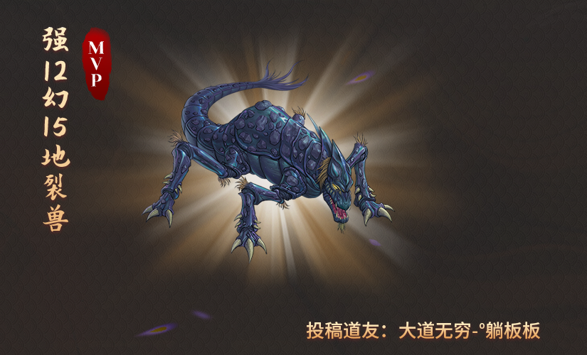 恭喜来自大道无穷-°躺板板的强12幻15地裂兽获得本期MVP!