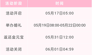 在限定时间内达到19999夫妻好友度,豪华婚礼消耗的金元宝将会全额返还(不包含婚礼红包)!