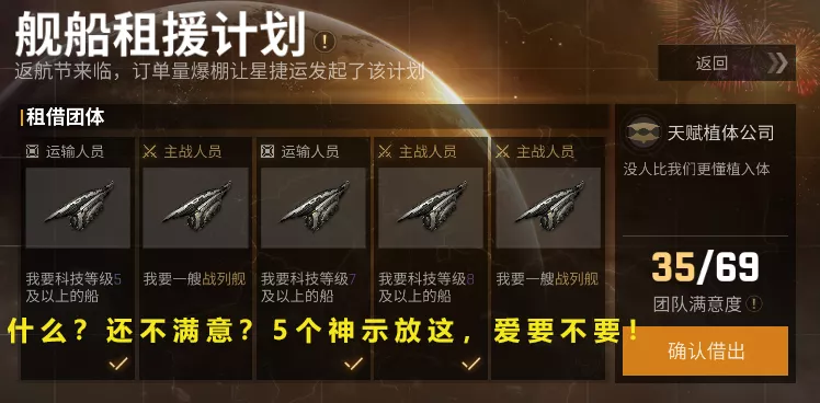 这是什么团队啊?给到5艘旗舰了还不够满意?不如把这些借我玩玩,就直接把满意度给你拉到爆表了属于是!