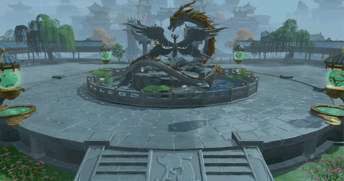 天枢龙凰像前,可感龙魂贯顶、凤鸣涤心;寺中,梵音绕梁,经幡垂落,正是修真者静心明性之净土。