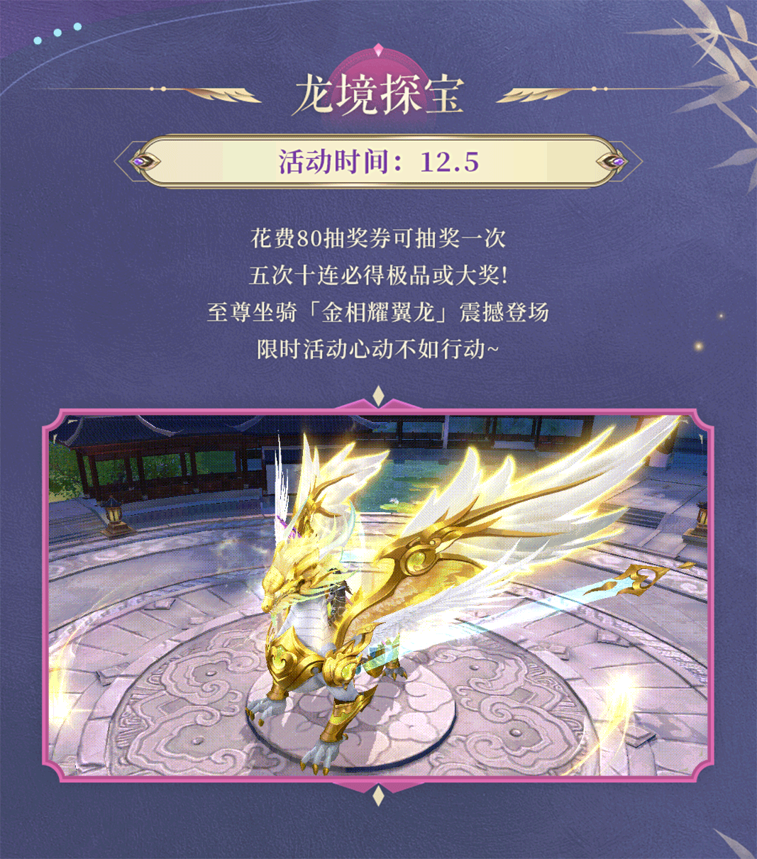 活动预告 | 漠海浮金,翼影吞沙!至尊坐骑金相耀翼龙震撼登场,帝王宝库提战养成材料狂欢放送~