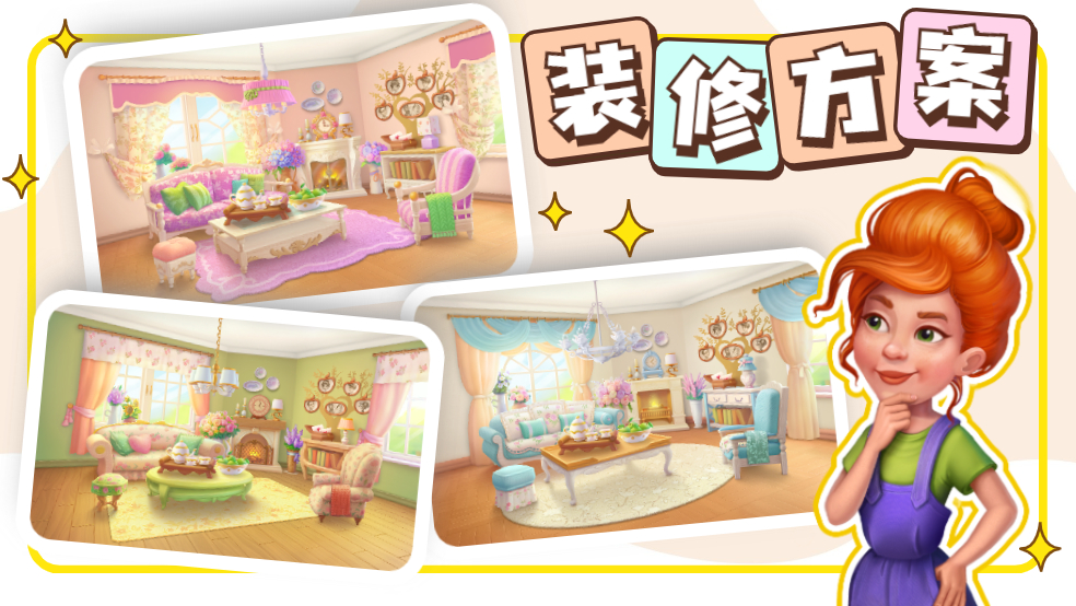 玩法规则:通过闯关收集关卡内附在元素上的装修票,把攒起来的装修票一步步给安妮的客厅大改造