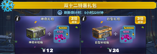 冬日双十二特惠持续来袭,每日充值指定钻石,即可领取双十二充值好礼!