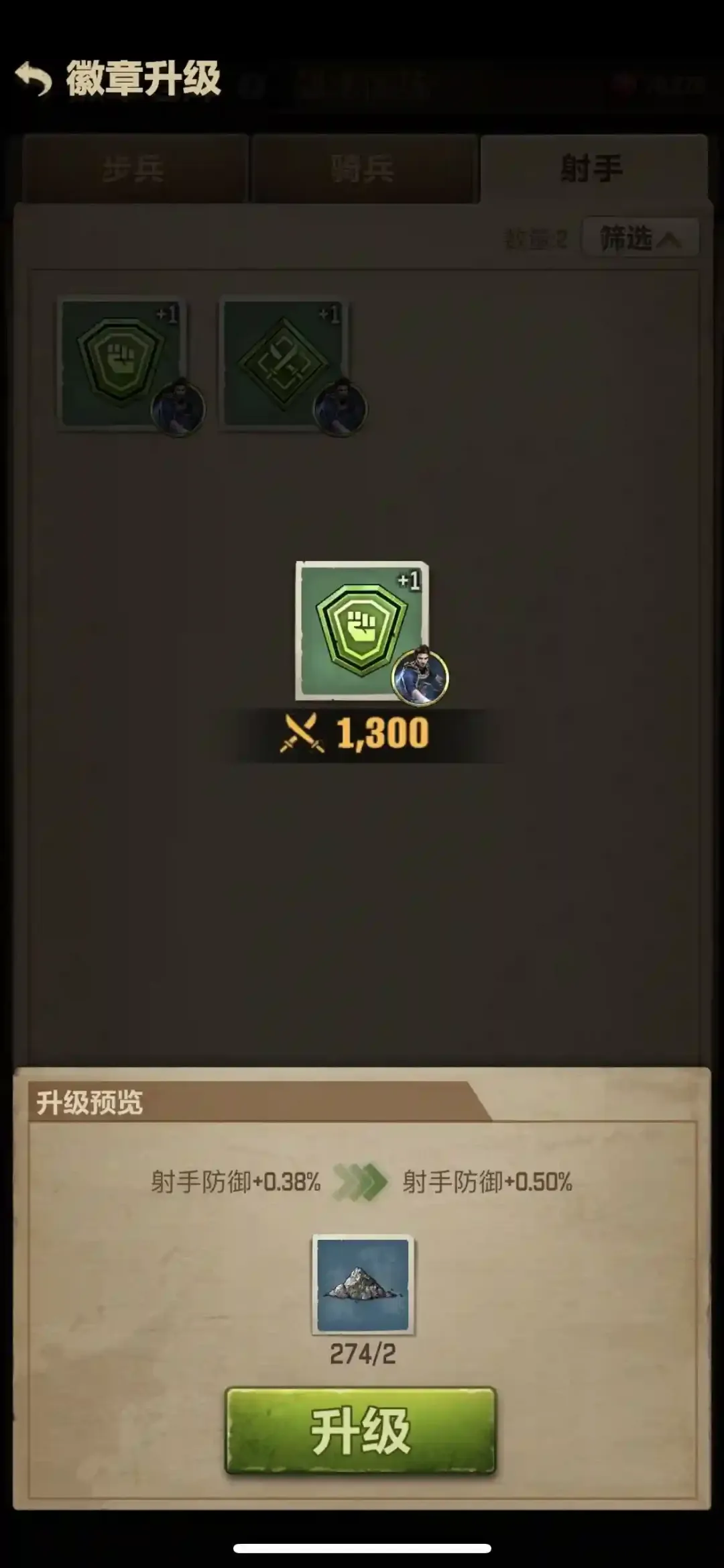 2.我们发现光有战术卡效果不是很明显,战术卡还要装备上战术徽章才能大幅提升属性,那么战术徽章主要产出是第二个卡池,当我们抽够三张战术卡后,就要改抽第二个卡池了,抽到对应兵种的徽章就可以用了,不管是什么颜色的都行,然后装配上去后升级即可,升级需要消耗金属碎屑(可以通过分解徽章获得),后期分解会全额返还,所以放心升级任意颜色的徽章,后面抽到金色的就用金色的升级(要注意兵种,兵种不对装上去没用)