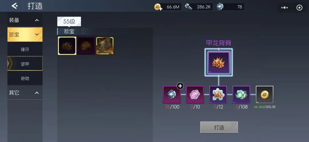 从稀有等级开始,珍宝可以通过打造获取。可以收集对应的珍宝碎片,消耗对应品级的疾风之魄和史诗装备精华,花费经典的装备模块和金币,就能成功打造珍宝。专属的碎片和疾风之魄都能在“逃生之路”副本掉落,也是需要一定时间进行收集的。