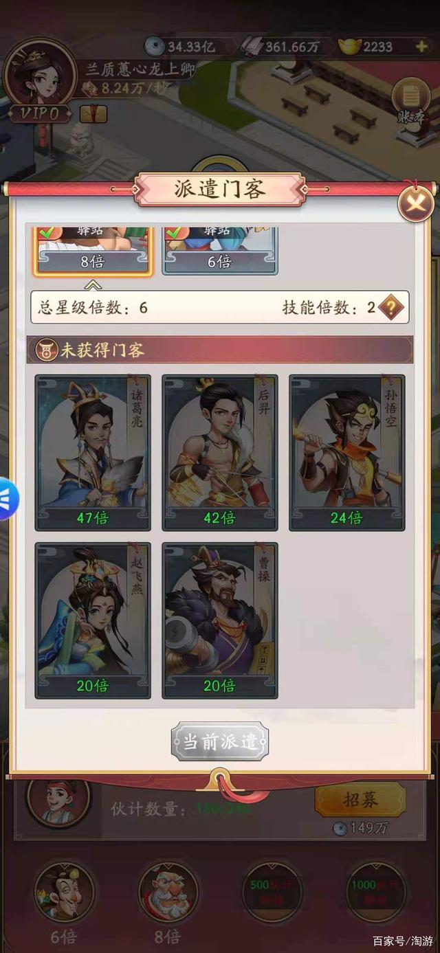 实际上在游历中所获得的各个大人物最终都成为了主角的得力门客,相比同类游戏主角只能苦苦经营一个店而言,本作的主角可是要经营整条街所有店铺业务的,原因很简单,大东家的家底太雄厚了必须扩张。顺带一提,每个店铺都可以由四名门客来辅助呦,那么搭配也就成了游戏的衍生玩法,如果你想,可以将刘备和诸葛亮放在一起弥补曾经的遗憾,甚至还可以将妲己和唐僧配在一起,想想这信息量,多少还有些小激动呢。