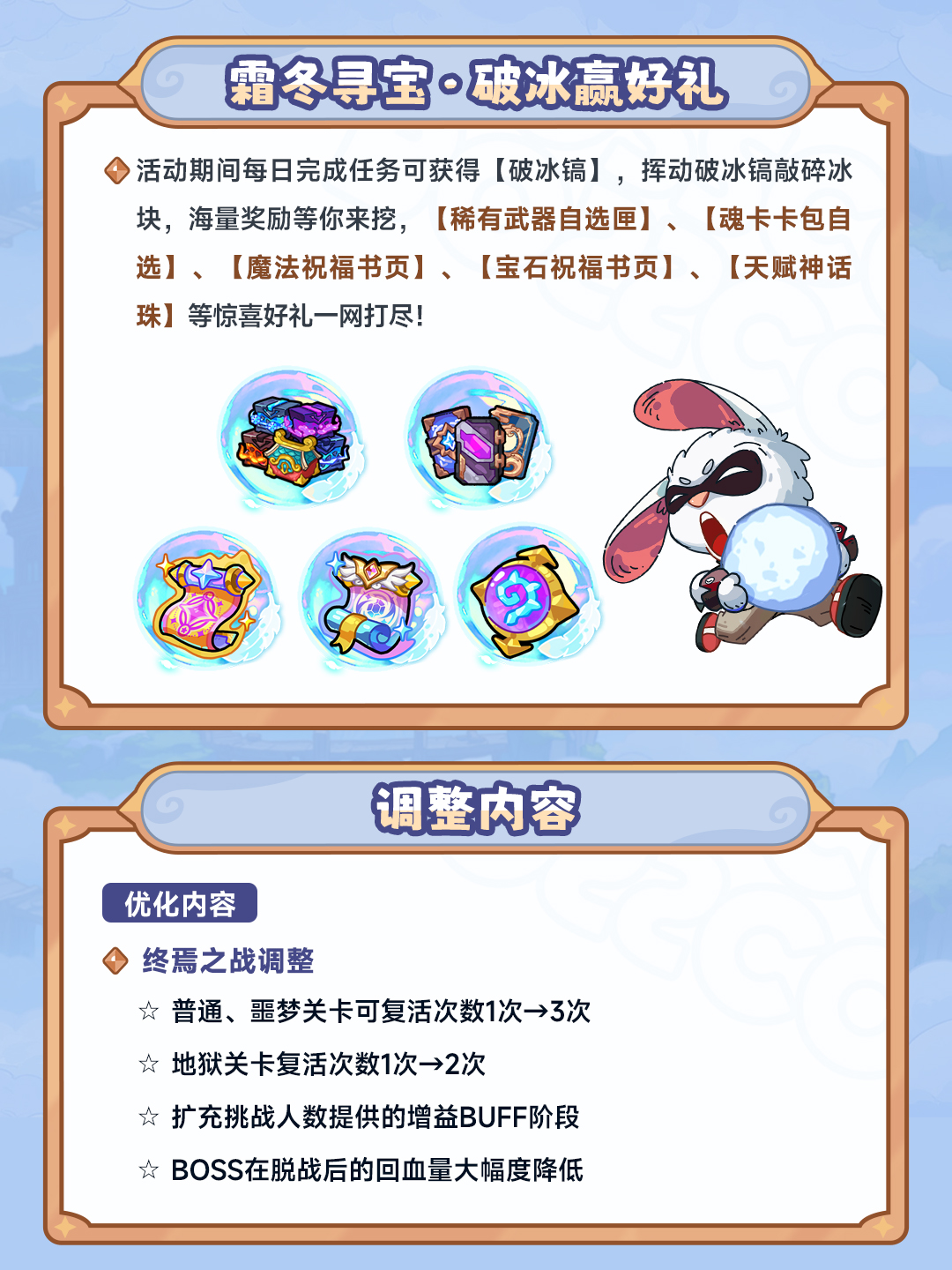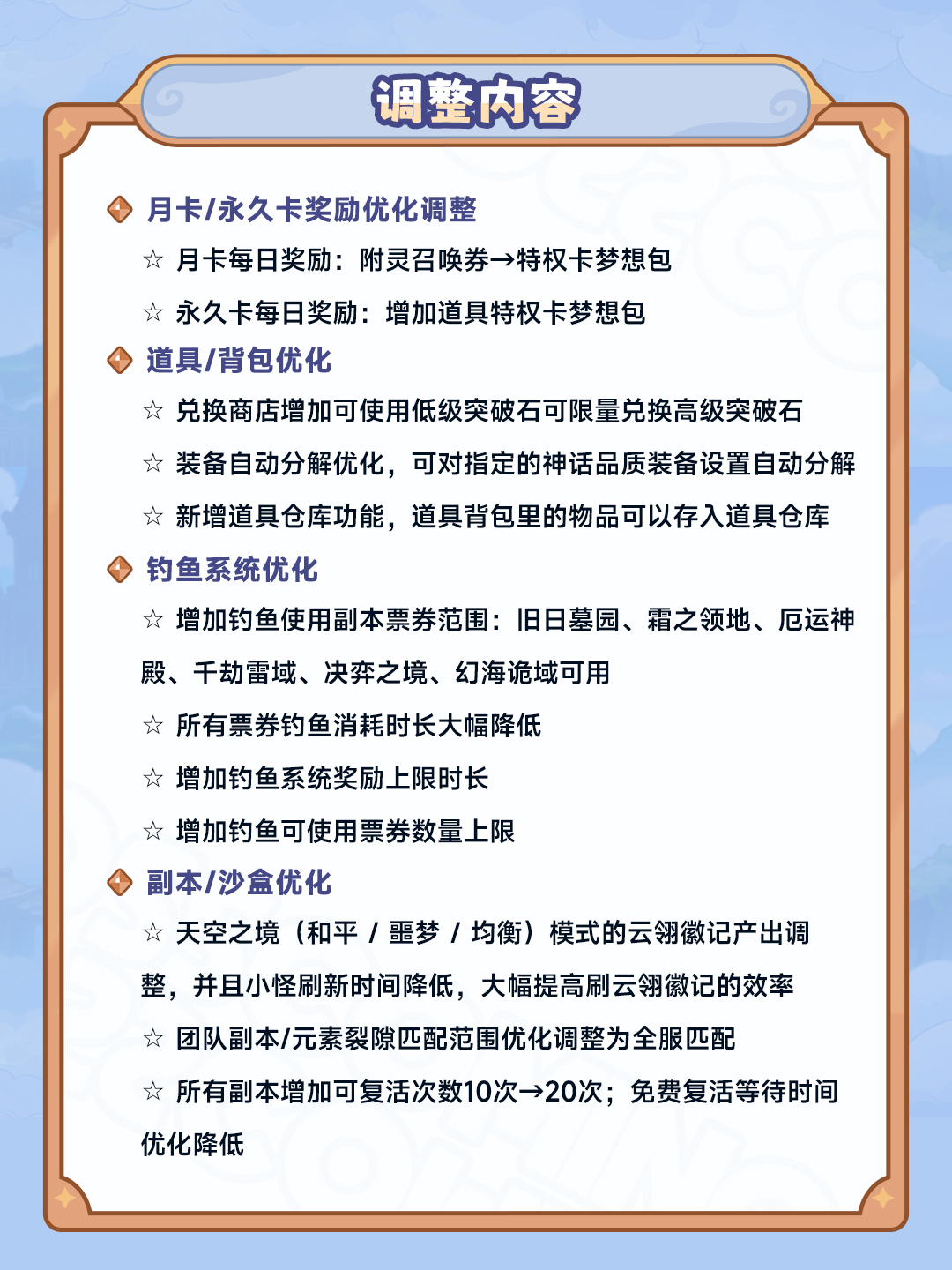 羽毛刷得太慢了?终焉之战打不过?道具背包塞不下?钓鱼功能闲置了?勇士们,大家反馈的多项优化调整上线啦!