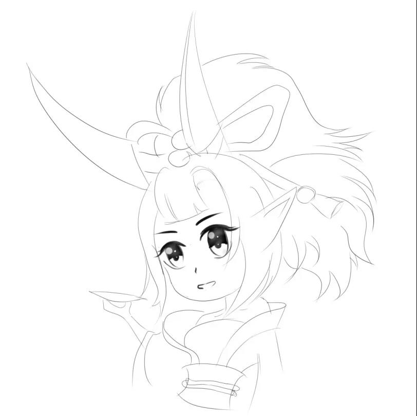 画上我的卡姿兰大眼睛,再加上我可爱的蝴蝶结、龙角和马尾