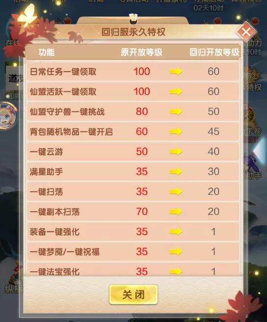 ◆ 开启条件:在回归服创建角色且等级达30级以上开启
