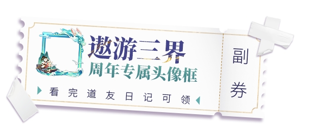 由道友【小小徐】设计的“遨游三界”周年限定头像框!看完道友日记即可领取喔~