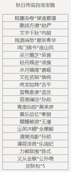 累计参与寒露夺宝160次(消耗寒露夺宝券*800),可领取奖励:秋日传说自选宝箱,限完成1次。
