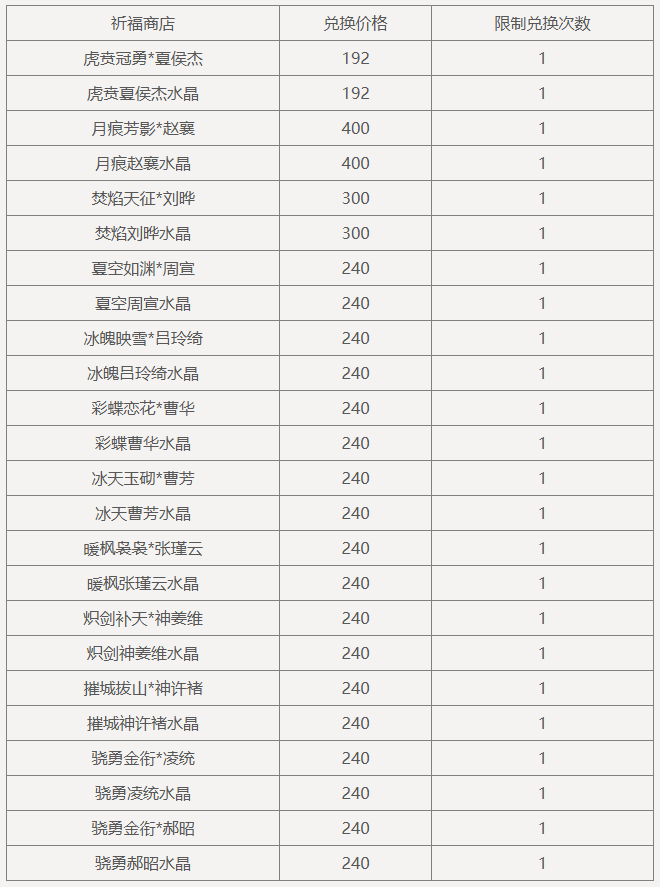 注:其他兑换内容请前往游戏内查看。