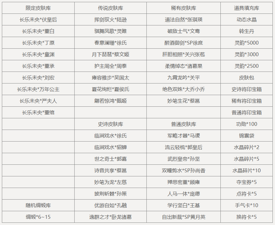 使用男武将完成5局游戏:寒梅*5,皮肤包*2,限完成1次。
